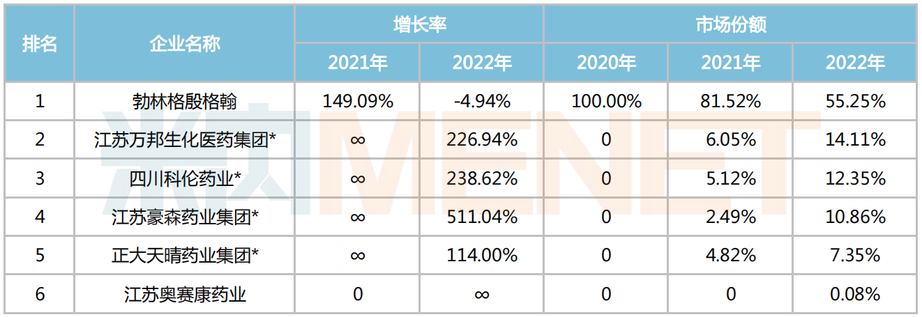 来源:米内网中国公立医疗机构药品终端竞争格局