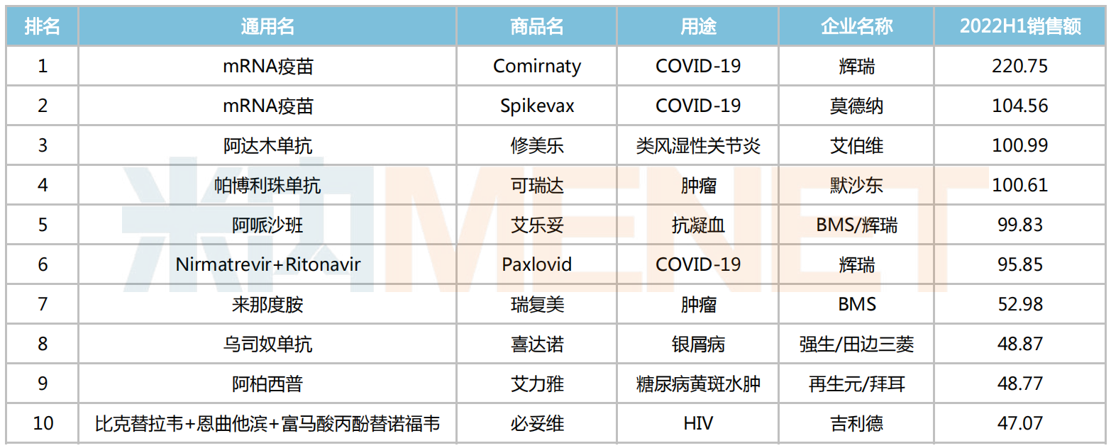 2022H1:新冠治疗药“当道”,6大产品销售额均超$90亿