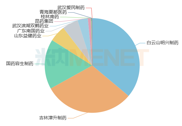 米内网数据显示,烟酰胺注射剂2022年在中国公立医疗机构终端销售规模接近40亿元,同比增长31.22%;2023H1也有近20亿元的销售收入,白云山明兴制药、吉林津升制药、国药容生制药合计占据超八成的市场份额。