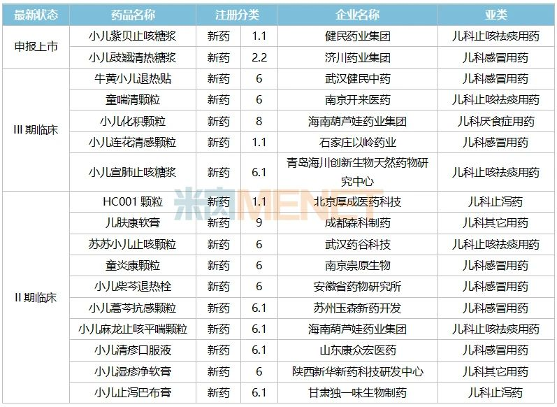 表3:部分处于II期临床以上阶段的儿科中药新药