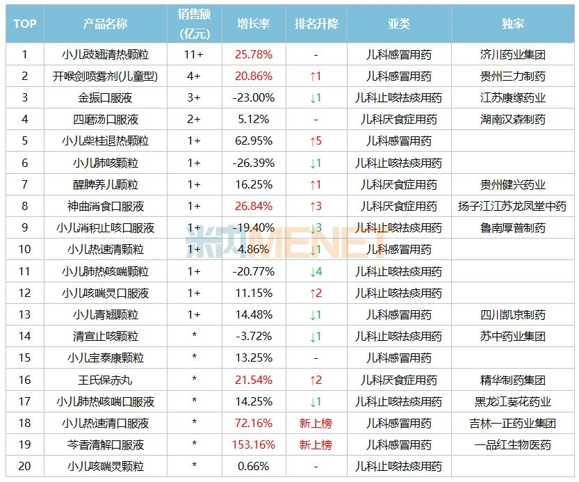 13个独家产品称霸TOP20,扬子江、一品红连续三年大涨