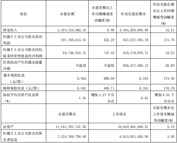 10月28日,康恩贝披露2023年三季度业绩报告,报告期内,公司实现营业收入51.84亿元,同比增长15.51%;归属于上市公司股东的净利润约6.23亿元,同比增加171.76%;基本每股收益0.243元,同比增加173.03%。