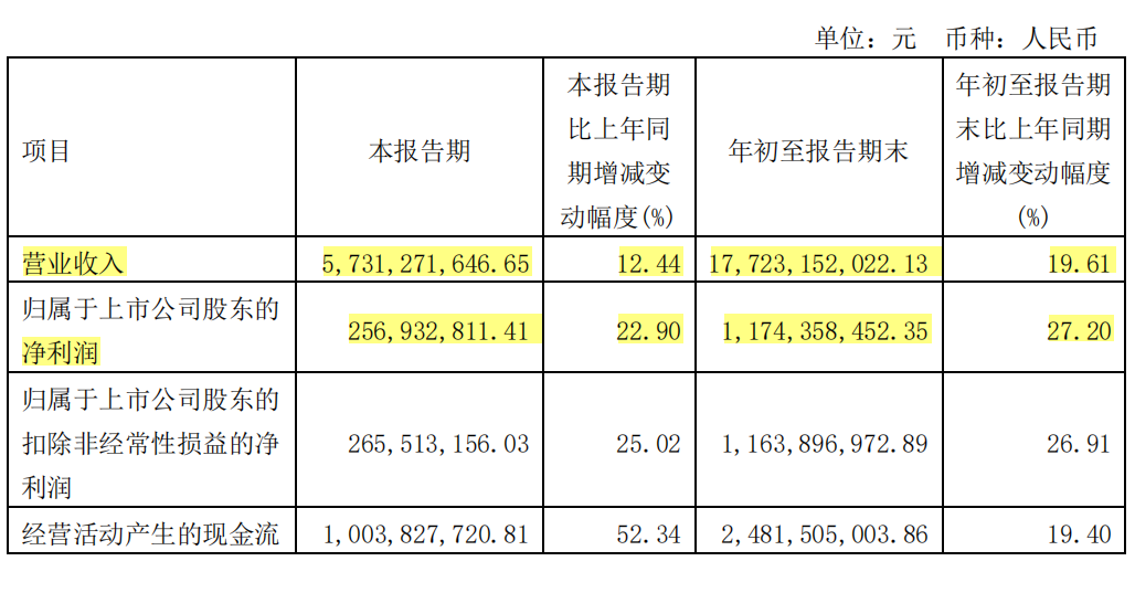 分季度来看,第三季度营收达57.31亿元,同比去年三季度增长12.44%;实现归母净利润2.57亿元,同比增长22.9%。