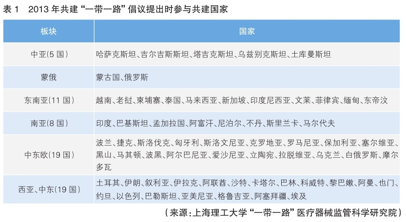 据统计,2013年共建“一带 一路”倡议提出时,包括中国在内的65个国家(详见表1),总人口约44亿人,年生产总值约21万亿美元,分别占全球的62.5%和28.6%。“一带 一路”沿线国家涉及大部分亚洲国家、近一半的欧洲国家和一个非洲国家——埃及。“一带 一路”沿线有着广阔的市场和多样化的消费需求,随着近年来交通基础设施的大幅改善,商品物流效率提升,为医疗器械出口创造了便利条件。
