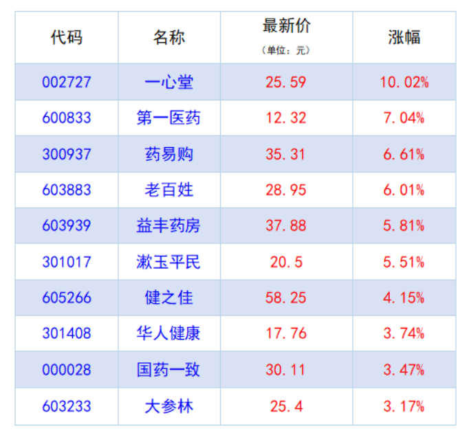 资本市场投资者对此反应积极,医药商业、医药电商板块上市公司股价“狂飙”。截至11月10日收盘,一心堂涨停,第一医药涨超7%,药易购、老百姓涨超6%,益丰药房、漱玉平民涨超5%,健之佳、华人健康、大参林等跟涨。