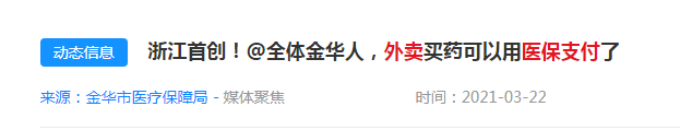 江浙地区在O2O医保支付试点工作已经走在前面。早在2021年3月,全国首个外卖刷医保买药试点在浙江金华市落地,覆盖6家药房,相关平台为饿了么和支付宝。参保人只需在支付宝上激活并绑定本人的医保电子凭证,就可在线医保购药,或者在相关网购和外卖平台上标有“医保支付”的定点药店购药,也可实现在线医保购药。