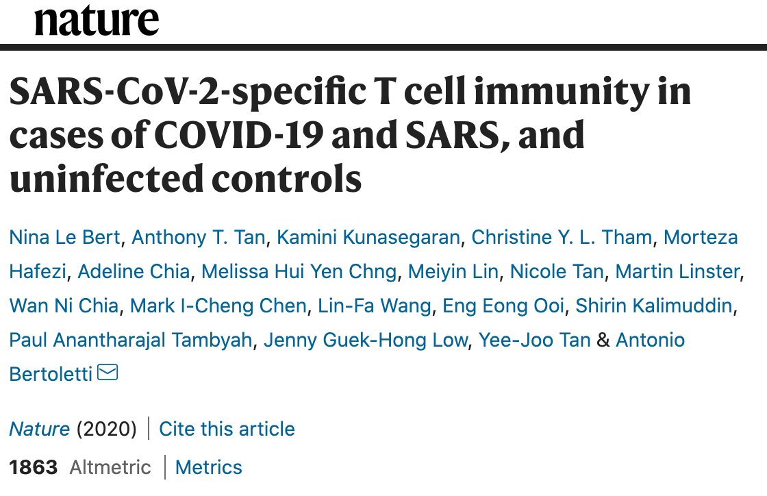 今天,杜克-新加坡国立大学医学院传染病专家Antonio Bertoletti教授领衔的研究团队,在顶级期刊《自然》上发表了一篇重要研究论文[1]。