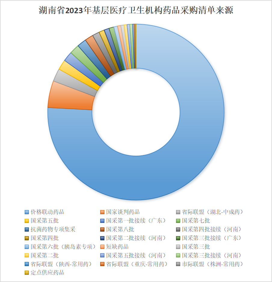 从本次湖南《通知》公布的2023年基层药品采购清单来看,此次进入湖南基层医疗机构的品种,包括集采、国谈品种以及其他联动产品,品种数量多,来源广泛。