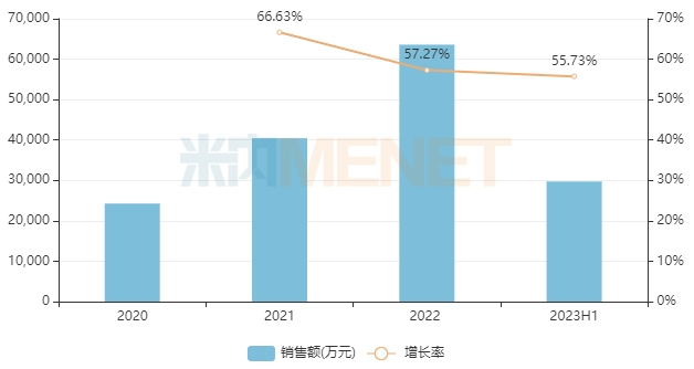 贵州健兴药业的肺力咳合剂为医保甲类、OTC甲类(双跨)品种,具有清热解毒、镇咳祛痰等功效,适用于痰热犯肺所引起的咳嗽痰黄等。近年来肺力咳合剂在中国城市实体药店终端的销售额均以双位数的增速持续走高,2022及2023H1销售额增速均超过90%。