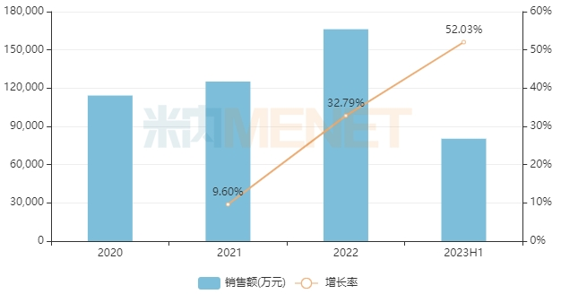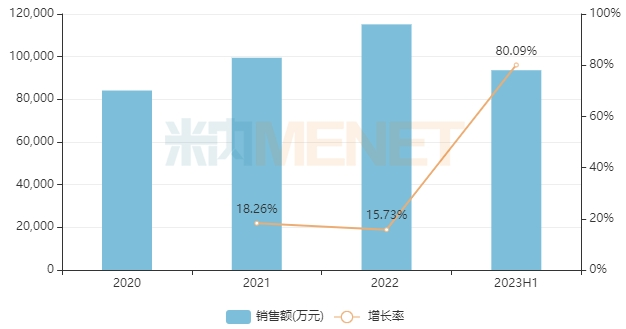 太极集团的急支糖浆为国家医保乙类、基药、OTC甲类(双跨)品种,具有清热化痰、宣肺止咳等功效,适用于外感风热所致的咳嗽。该产品2018年在中国城市实体药店终端的销售额超过10亿元,之后受疫情影响有所下滑,2022年防控政策调整后暴涨97.82%,2023H1继续以231.8%的增速放量,预计全年销售额将再创新高。