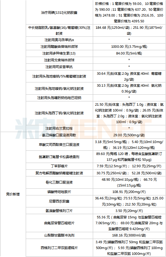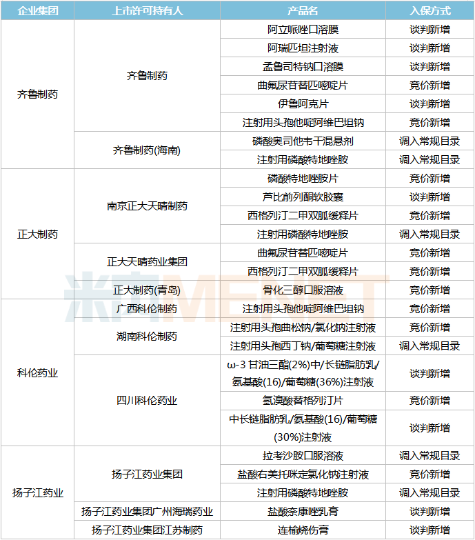 03、再有5个国采产品直接调入 16个非独家产品竞价“入保”