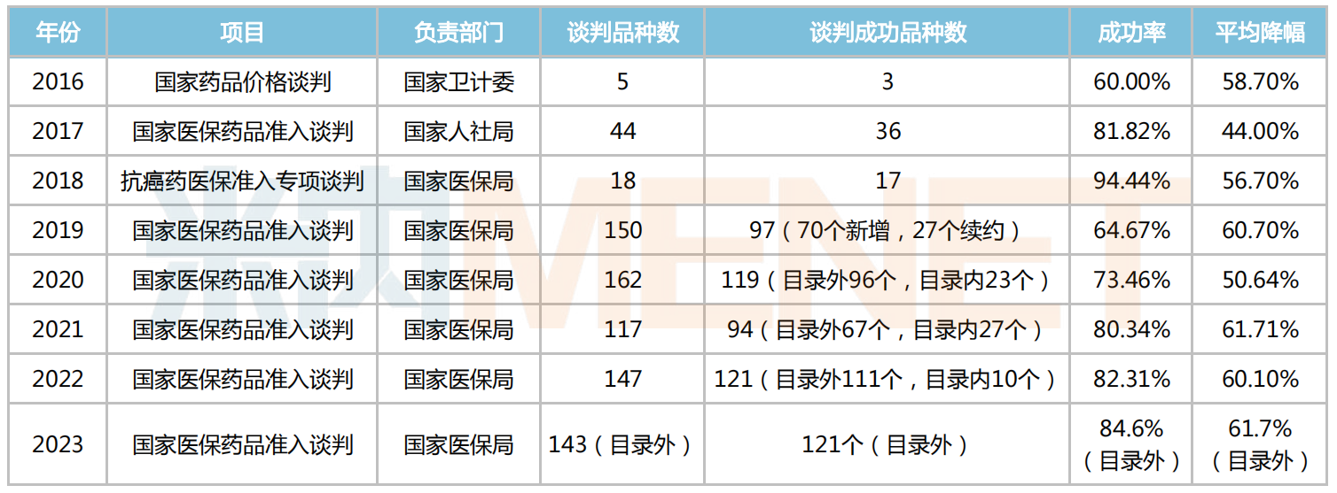 2016年至今,国家医保谈判已经进行了八轮,不断优化目录内药品结构和疗效水平,将肿瘤药、慢病药、罕见病药和儿童用药等保障短板逐步补齐。与往年相比,2023国谈新增品种数量、谈判成功率等均有质的飞越。