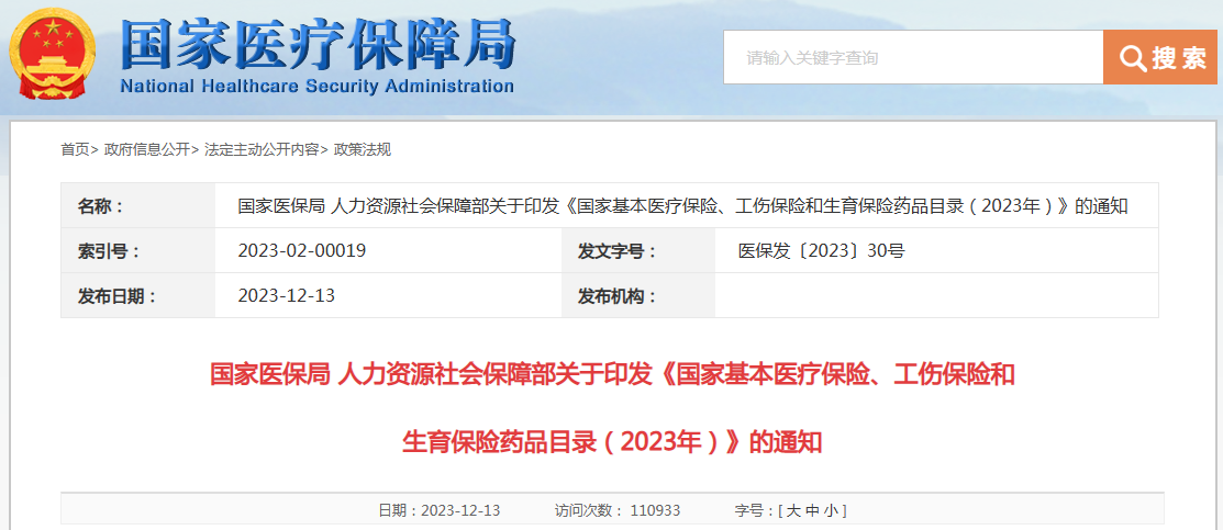 12月13日,国家医保局正式公布了2023年版国家医保药品目录调整名单。