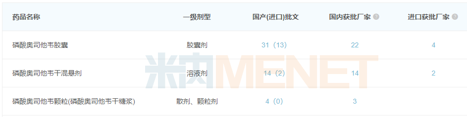 奥司他韦制剂国内获批情况