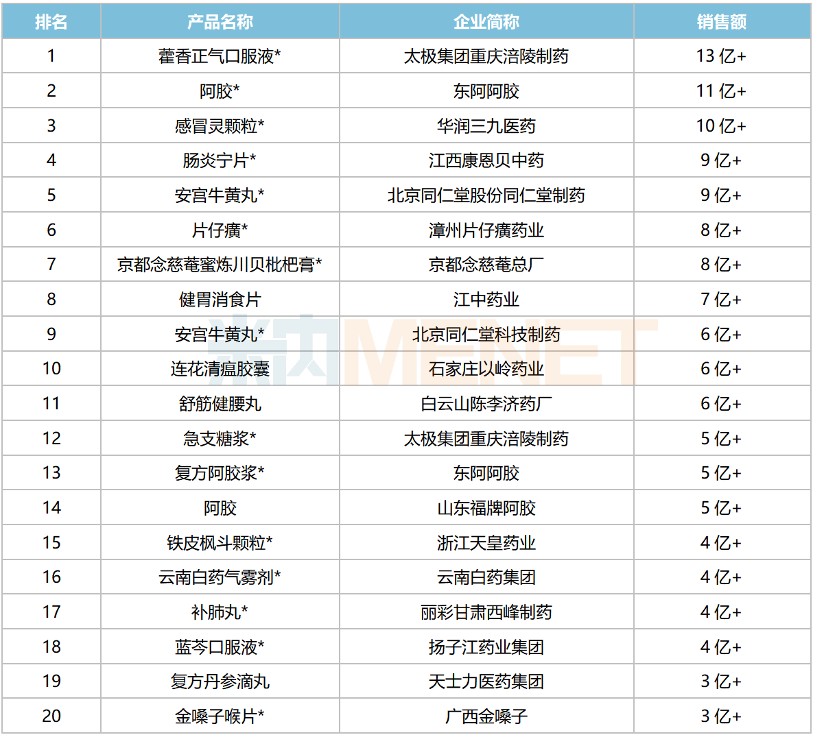 02、中成药TOP20洗牌! “一哥”易主,12个独家品种霸屏