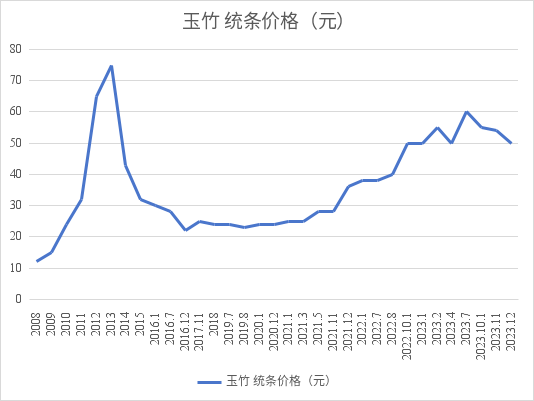 2010年玉竹行情上涨,到2011年4月,湘玉竹价格已上升至45元左右,此价位一直持续到2012年底。