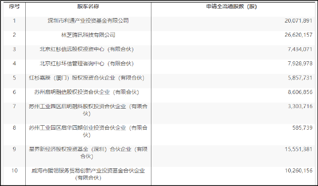 2023年7月,中国证监会国际合作部发布关于北京圆心科技集团股份有限公司境外发行上市及境内未上市股份“全流通”备案通知书(国合函〔2023〕988号),通知书中明确了公司22名股东拟将所持合计114,543,237股境内未上市股份转为境外上市股份,并在香港联合交易所上市流通。其中,腾讯、红杉等原始股东均在其列,前10名股东名单如下图。
