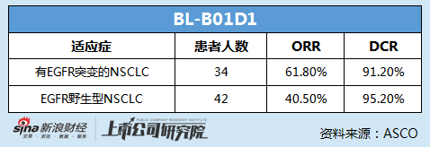 其中,BL-B01D1的FIH I期临床数据在2023ASCO上通过口头报告的方式呈现。临床数据显示,在34名有EGFR突变的NSCLC患者中,客观缓释率(ORR)达到61.8%,疾病控制率(DCR)达到91.2%;在42名EGFR野生型NSCLC患者中,ORR为40.5%,DCR为95.2%。