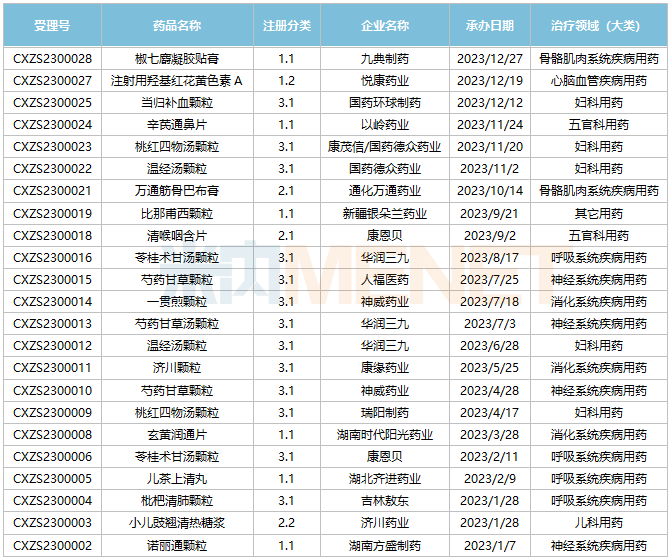 2022年国内共有10款中药新药提交上市申请,创下5年内新高。2023年国内中药新药注册申请数量进一步提升,累计有23款中药新药提交上市申请,再创历史新高。