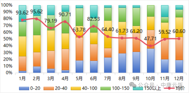 图2:2023年淘宝天猫平台销量TOP100桑椹(单品种)销量价格段分布