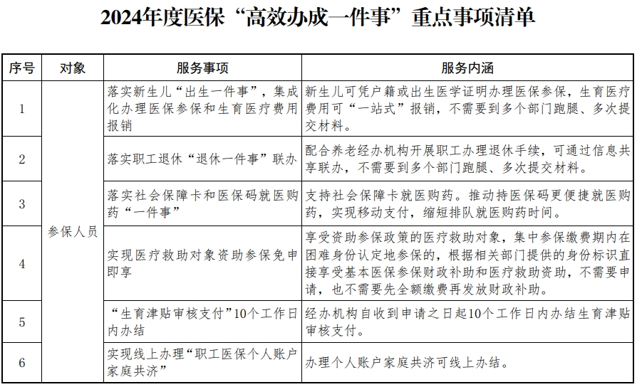 附件:2024年度医保“高效办成一件事”重点事项清单