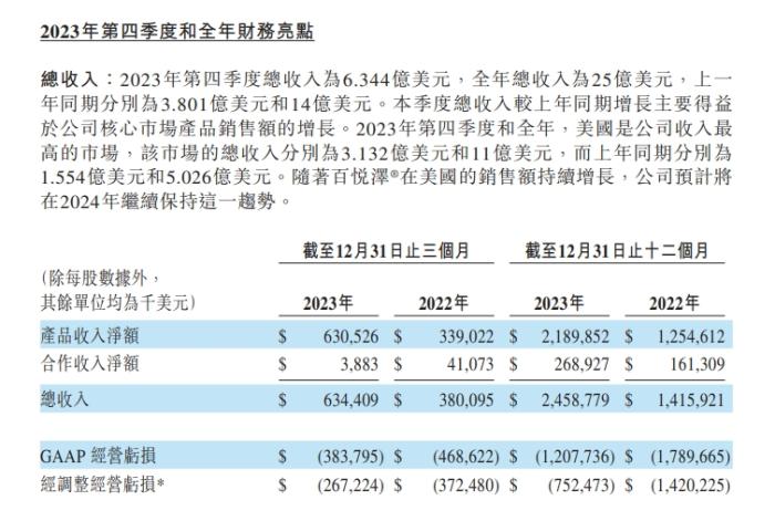 百济神州还强调,2023年第四季度和全年,美国是公司收入最高的市场,该市场的总收入分别为3.132亿美元和11亿美元,而上年同期分别为1.554亿美元和5.026亿美元。