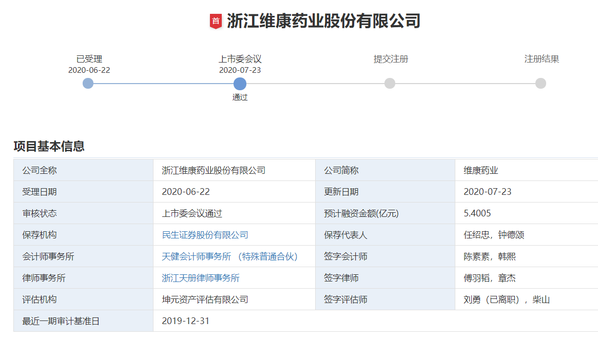 7月23日晚间,深交所发布创业板上市委2020年第7次审议会议结果公告,浙江维康药业股份有限公司(以下简称“维康药业”)首发顺利过会。截至今日,创业板注册制新规后,已有19家医药企业(制造、流通)赶考创业板。