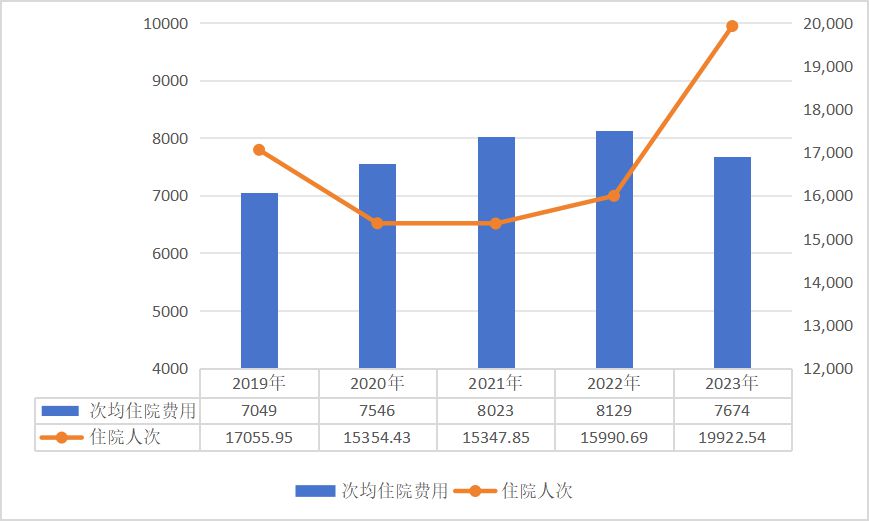 2019-2023年居民医保次均住院费用和住院人次