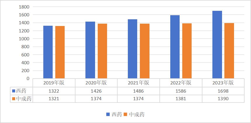 2019-2023年版国家医保药品目录收载的西药和中成药