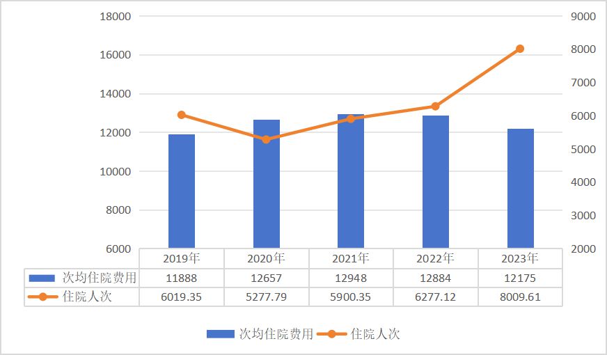 2019-2023年职工医保次均住院费用和住院人次