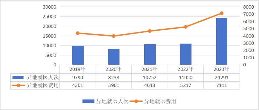 2019-2023年全国异地就医人次和就医费用