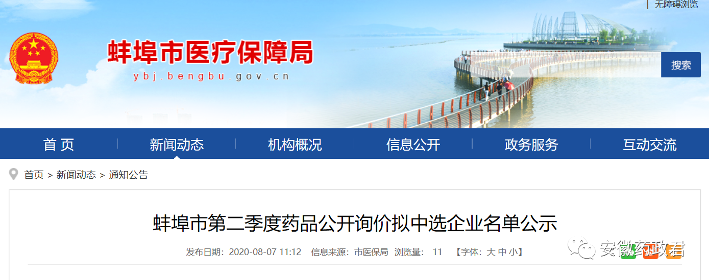 8月6日上午,蚌埠市医疗保障局根据《关于印发蚌埠市公立医疗机构药品价格合理形成暂行办法的通知》(蚌医保发〔2019〕13号)精神,严格按照公开询价工作规程,对部分药品进行了公开询价。现将本次拟中选企业名单予以公示,详见附表。