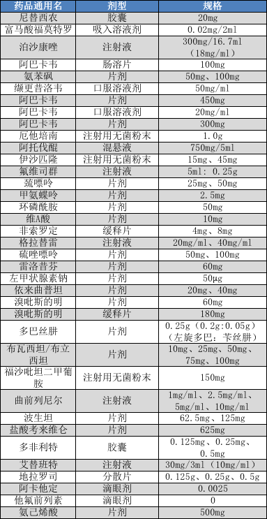 鼓励研发申报儿童药品清单(已有获批上市品种)