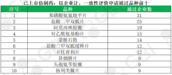 截至2020年7月31日,2020年7月份已上市仿制药申请一致性评价企业数排名前三的品种分别为苯磺酸氨氯地平片,阿莫西林胶囊以及盐酸二甲双胍片,其中,二甲双胍口服常释剂,缓释控释剂,卡托普利片已被纳入到第三批国家带量采购目录。