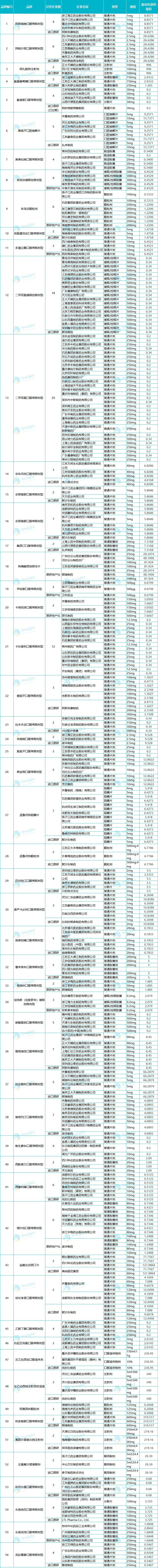 据赛柏蓝梳理,自7月21日,上海联采办发布《关于开展部分药品相关基础信息采集工作的通知》确定了第三批国采品种以来,近期,又有一批药企赶在了第三批国采前夕通过了一致性评价,有望与其他药企一争高下。8月14日,据国家药监局消息,先声药业4类仿制药枸橼酸托法替布片获批上市,并视同通过一致性评价。公开资料显示,枸橼酸托法替布片是辉瑞开发的Janus激酶(JAK)抑制剂,商品名为Xeljanz,2012年11月在美国率先上市,2017年3月在中国获批进口,2019年进入我国乙类医保目录。枸橼酸托法替布片是全球首个批准用于类风湿关节炎的靶向类改善病情抗风湿药,具有起效速度快、疗效优于传统合成类DMARDs、疗效和安全性与生物制剂类DMARDs相当的优势。2018年,托法替布全球销售额达17.74亿美元。目前国内市场上,辉瑞托法替布中标价中值为68.79元/片(5mg)。日前,据国家药监局消息,正大天晴2款4类仿制药阿哌沙班片、枸橼酸托法替布片已经获批上市,并视同通过一致性评价。也就是说,截至目前,国内获批上市并视同通过一致性评价的托法替布厂家有正大天晴、齐鲁制药、科伦药业、扬子江、南京正大天晴、先声药业6家。第三批国采的规则规定,符合申报品种资格的实际申报企业数达到7家的,最多入围企业将有5家,届时到底哪些企业能够顺利入围,我们拭目以待。8月14日,据国家药监局消息,普利制药4类仿制药左乙拉西坦注射用浓溶液获批上市,视同通过一致性评价——普利制药成为该品种国内第3家通过一致性评价的企业。公开资料显示,左乙拉西坦是一款抗癫痫药物,在国内的主要剂型有口服溶液、注射剂、片剂、缓释片。左乙拉西坦注射用浓溶液和口服溶液已经被纳入第三批集采,截至目前国内符合申报资格的厂家有Patheon公司、河北仁和益康、济川药业、重庆圣华曦、普利制药。8月7日,据国家药监局消息,齐鲁制药4类仿制药枸橼酸西地那非片获批上市,视同通过一致性评价,是国内继白云山和亚邦医药之后第3家通过该药品仿制药一致性评价的企业。西地那非原研厂家是辉瑞,临床主要用于治疗勃起功能障碍,数据显示,枸橼酸西地那非是ED市场目前规模最大的产品,占据市场份额超过70%。作为第三批国采品种,齐鲁制药的西地那非获批上市,将可能在第三批国采中,与辉瑞、白云山、亚邦医药共同竞标。根据国家集采的相关规则,符合“申报品种资格”的实际申报企业数为4家的,最多入围企业数量为3家。7月29日,据国家药监局消息,华东医药的4类仿制药阿那曲唑片获批上市,并视同通过一致性评价。阿那曲唑片主要适用于绝经后妇女的晚期乳腺癌的治疗,原研厂家是阿斯利康,商品名瑞宁,1998年进入中国。IMS数据库显示,阿那曲唑片2018年全球销售额约为3.76亿美元,中国销售额约为0.92亿美元。作为第三批国采品种,截至目前,阿那曲唑片通过一致性评价的企业有扬子江、重庆华邦制药、海正药业、华东医药。也就是说,在即将到来的第三批国采中,上述4家国内药企将与原研药企阿斯利康展开竞争。7月30日,国家药监局发布的药品批件显示,北京福元药业的4类仿制药孟鲁司特钠咀嚼片获批上市,同时视同通过一致性评价,获得入局第三批集采的资质。资料显示,孟鲁司特钠咀嚼片是一种强效、选择性的白三烯受体拮抗剂,适用于2岁至14岁儿童哮喘的预防和长期治疗,以及减轻过敏性鼻炎引起的症状。1997年,孟鲁司特钠咀嚼片首次在欧盟上市,1998年,美国FDA批准其上市,1999年在国内上市。在国家第三批集采中,孟鲁司特钠咀嚼片的最高有效申报价为 5.418 元(4mg)、6.4273 元(5mg)。目前符合孟鲁司特钠咀嚼片集采申报条件的企业一共6家企业,分别是齐鲁制药、石药、民生滨江、合肥英太和默沙东、北京福元药业。7 月 30 日,国家药监局发布的药品批件通知显示,华润赛科和扬子江药业的4类仿制药维格列汀片获批上市,并视同通过一致性评价。资料显示,维格列汀片的原研厂家是诺华,在我国获批在二甲双胍作为单药治疗血糖控制不佳时与二甲双胍联合使用。目前,除诺华外,江苏豪森、齐鲁制药、北京泰德、南京圣和、南京优科和华润赛科的维格列汀片均通过了一致性评价。更早之前,据国家药监局消息,齐鲁的4类仿制药阿哌沙班片获得国家药监局批准上市,视同通过一致性评价。资料显示,阿哌沙班片是一种可逆的、高选择性的直接Xa因子抑制剂,属于新型口服抗凝药物,主要用于髋关节或膝关节择期置换术的成年患者,预防静脉血栓栓塞事件(VTE)。据施贵宝、辉瑞去年的财报,2019年阿哌沙班片全球销售额分别为79.29亿美元、42.20亿美元,合计销售额为121.49亿美元,正式跻身百亿美元俱乐部。除了原研厂家施贵宝,目前国内有5家药企拥有阿哌沙班片生产批文——2019年1月,豪森药业拿下阿哌沙班片首仿,随后正大天晴、科伦药业、青峰药业、齐鲁制药相继获批,5家药企的阿哌沙班片均按新注册分类报产获批,视同通过一致性评价。除上述品种外,据Insight数据库信息,京新药业的匹伐他汀钙分散片于7月10日获批;诺捷制药的布洛芬颗粒于7月9日获批;四药制药的缬沙坦片于7月9日获批;山东新时代药业的奥美拉唑肠溶片于7月2日获批,上述药品也均为第三批国采品种。