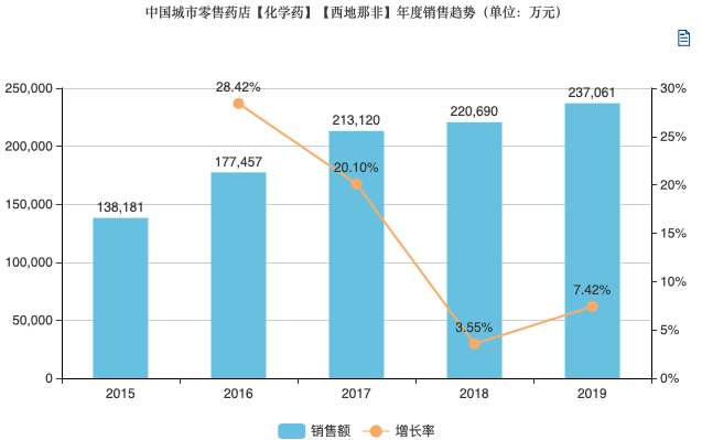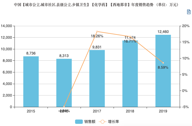 以西地那非为例,零售市场远大于医院市场。据米内网数据显示,2019年西地那非的全国零售市场规模为23.7亿元,而全国医院市场规模只有1.2亿元。