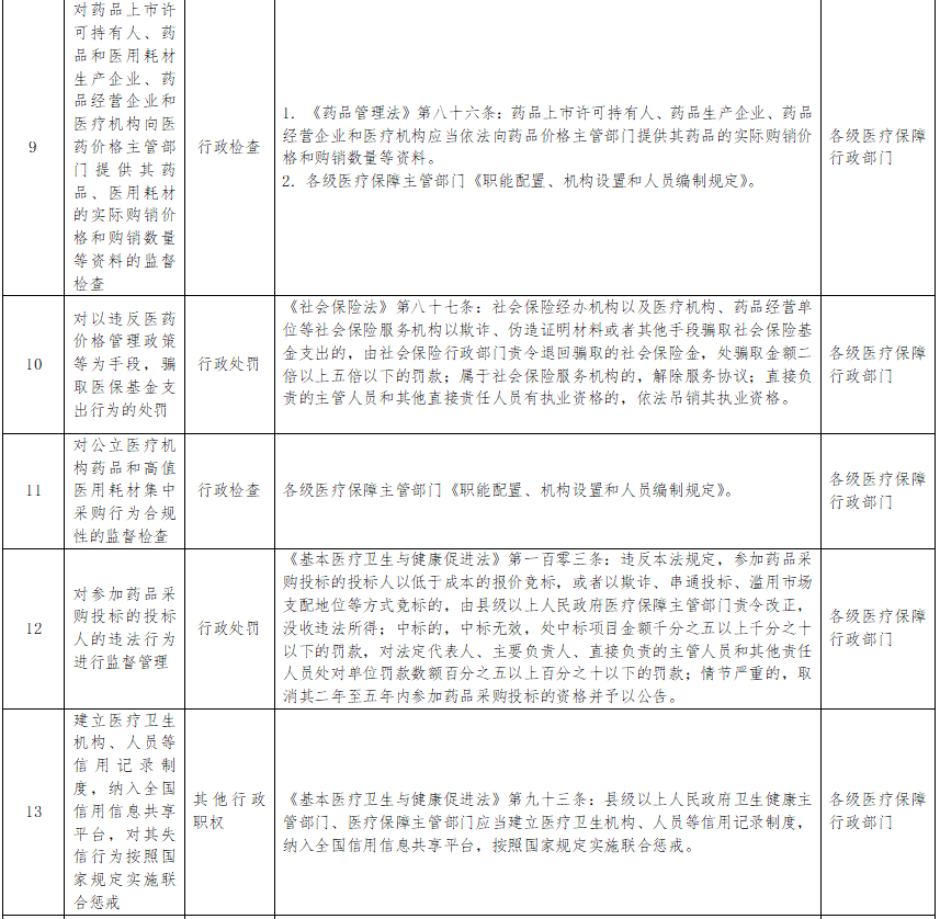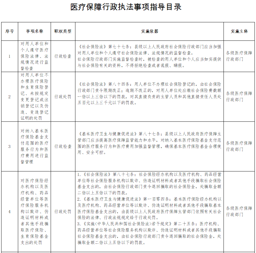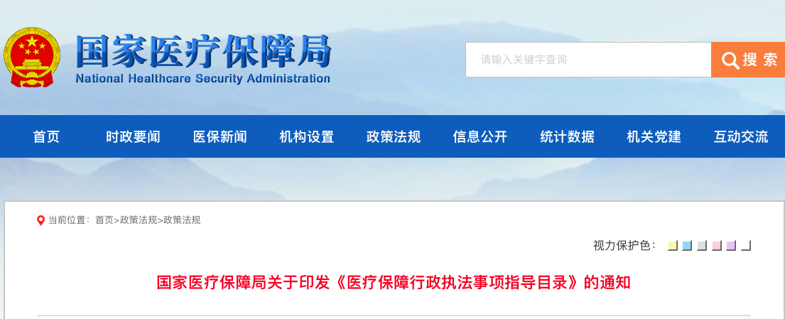 国家医保局发布行政执法指导目录,涉及药品价格监测、成本调查等内容指导目录公布,医保局有权做这些事