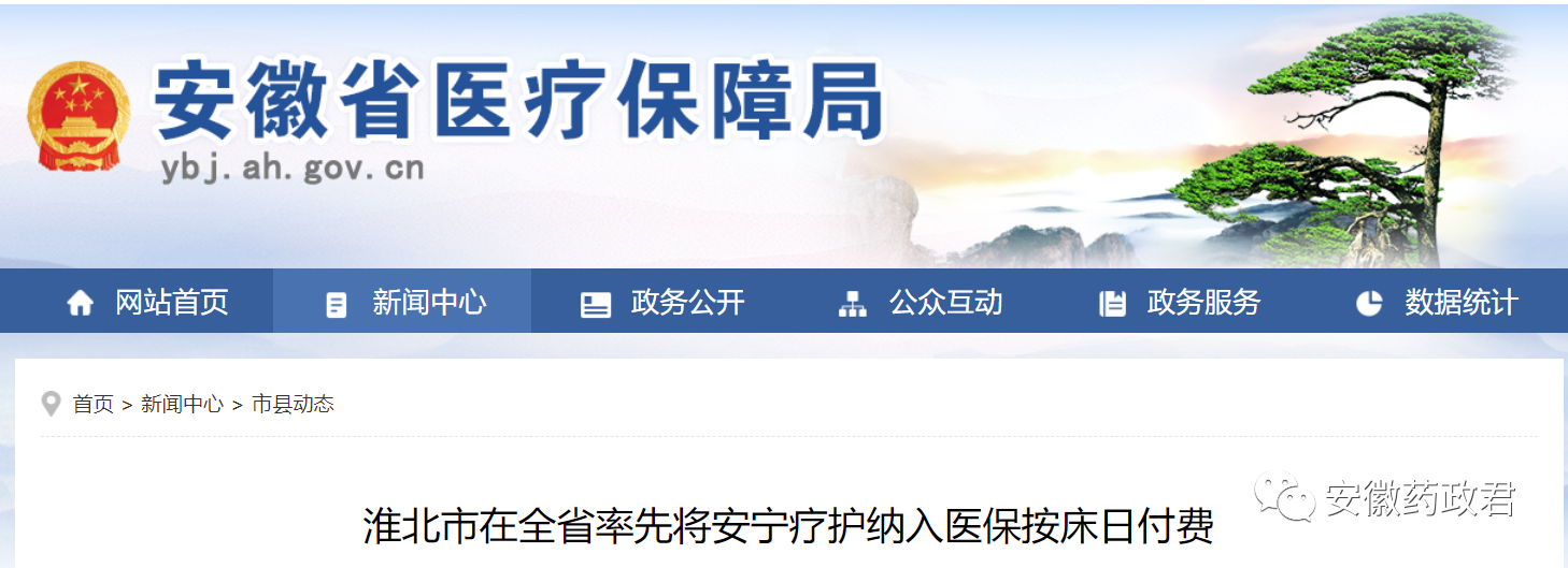 日前,淮北市医保局联合市卫健委联合印发《淮北市安宁疗护患者住院医疗保险按床日付费实施办法(试行)》,在全省率先将安宁疗护纳入基本医保。