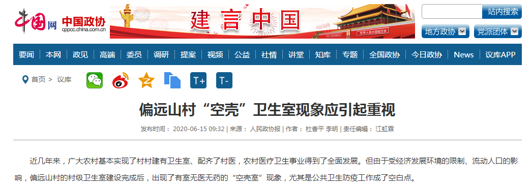 上述两点说的是留言者的亲身感受,至于留言者所遇之事是个例还是普遍现象,这已经不重要,至少从小编所了解的情况来看,第二条内容所述“村卫生室名存实亡”的现象还是比较普遍的,而且这也不是近期才形成的,而是有些时日。