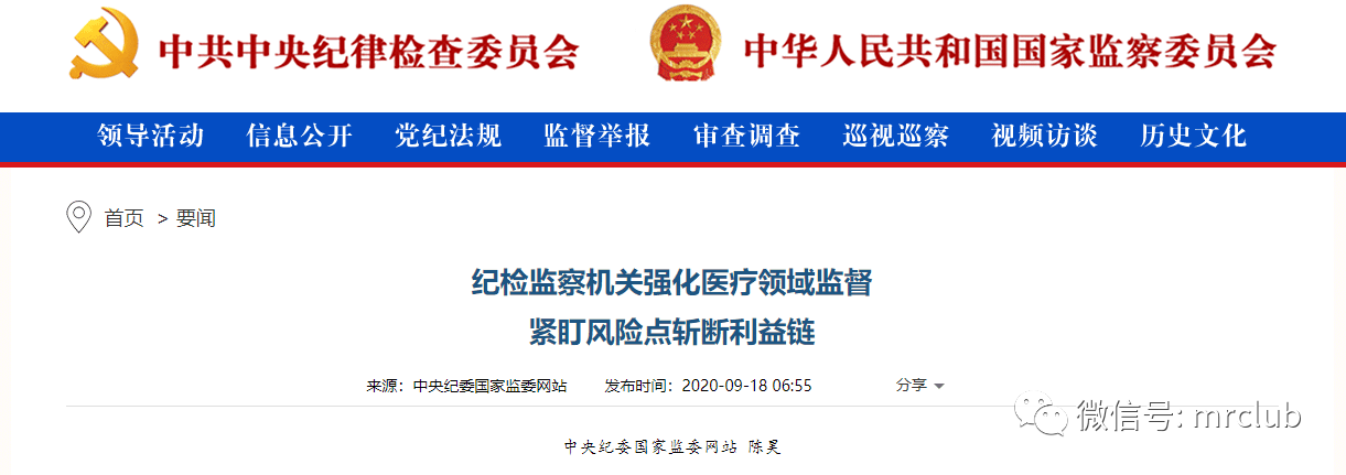 并且,9 月 18 日,中纪委国家监委官网发布要闻《纪检监察机关强化医疗领域监督,紧盯风险点斩断利益链》,引述多省具体案例,指出纪检监察机关应立足职能职责,坚持问题导向,全面梳理医疗领域廉政风险点和高风险环节,坚决斩断医疗领域腐败利益链,推动医疗行业祛除歪风邪气。