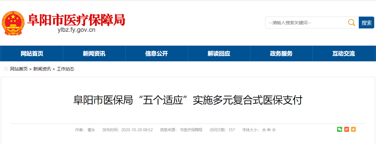 为贯彻落实《国务院办公厅关于进一步深化基本医疗保险支付方式改革的指导意见》和《安徽省人民政府办公厅关于进一步深化基本医疗保险支付方式改革的实施意见》,实行精细化管理,激发医疗机构规范行为、控制成本、合理收治的内生动力,保障参保人员基本医疗权益和医保制度长期可持续发展。阜阳市医保局坚持“五个适应”,实施多元复合式医保支付方式。
