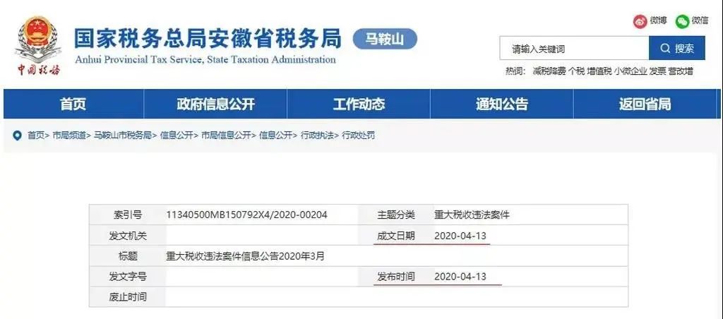 随后,安徽省马鞍山市4月13日公布《重大税收违法案件信息公告(2020年3月)》。51家公司“中标”;其中34家与医药行业相关企业被证实虚开发票,虚开金额高达1.6亿。
