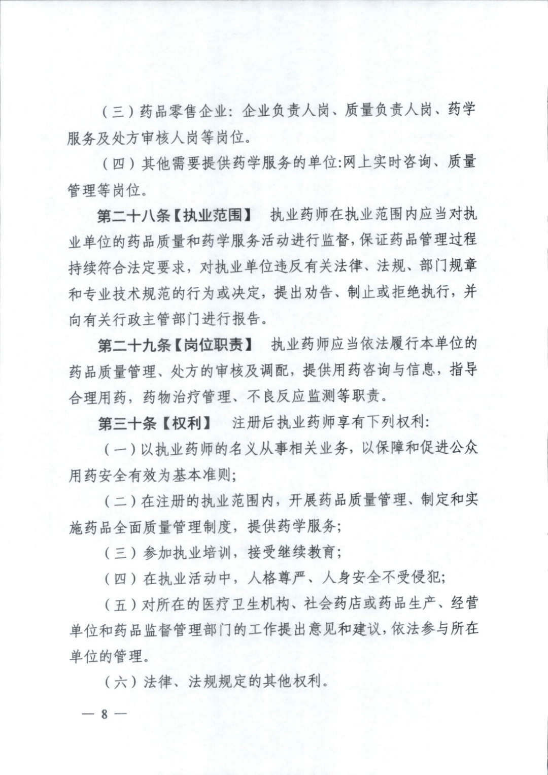 其中,第27条明确,药品零售企业的企业负责人岗、质量负责人岗、药学服务及处方审核人岗等岗位应配备执业药师。