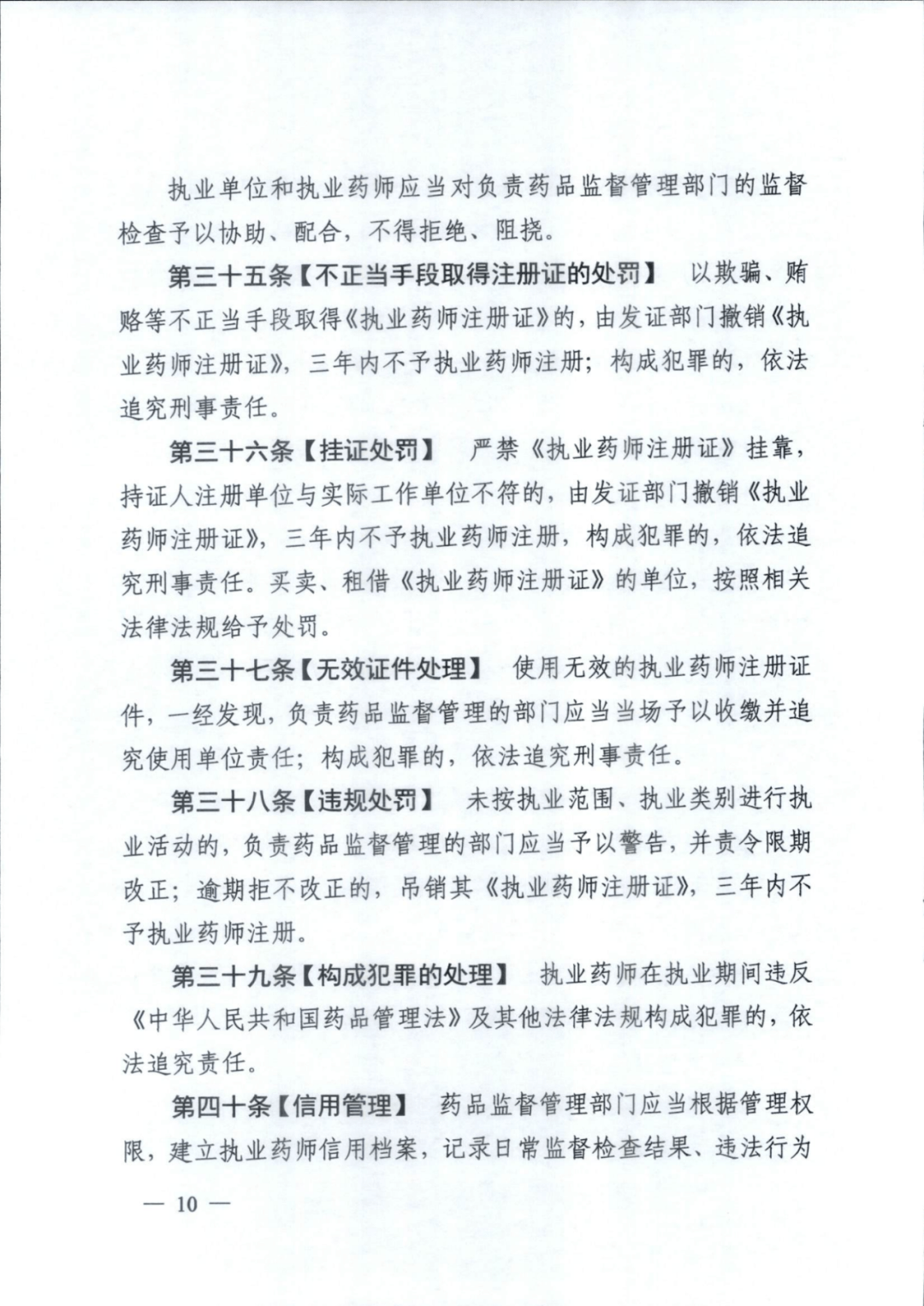 例如,针对挂证,第36条明确,严禁《执业药师注册证》挂靠,持证人注册单位与实际工作单位不符的,由发证部门撤销《执业药师注册证》,三年内不予执业药师注册,构成犯罪的,依法追究刑事责任。买卖、租借《执业药师注册证》的单位,按照相关法律法规给予处罚。