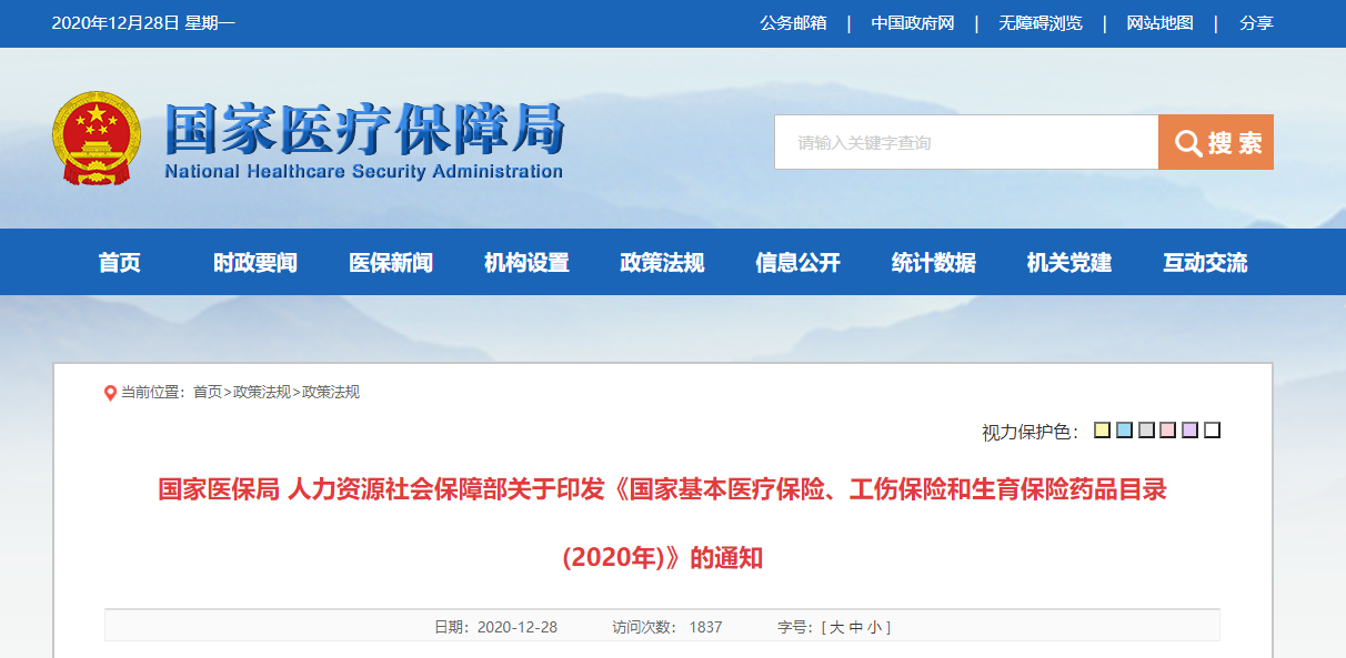 12 月 28 日,据央视新闻报道,2020 医保谈判结果出炉。共 138 个目录外独家品种和 24 个目录内续约品种(共计 162 个品种)参与了谈判,其中 119 个品种谈判成功,包括 96 个目录外品种和 23 个目录内品种,谈判总成功率为 73.46%,谈成药品平均降幅 50.64%。