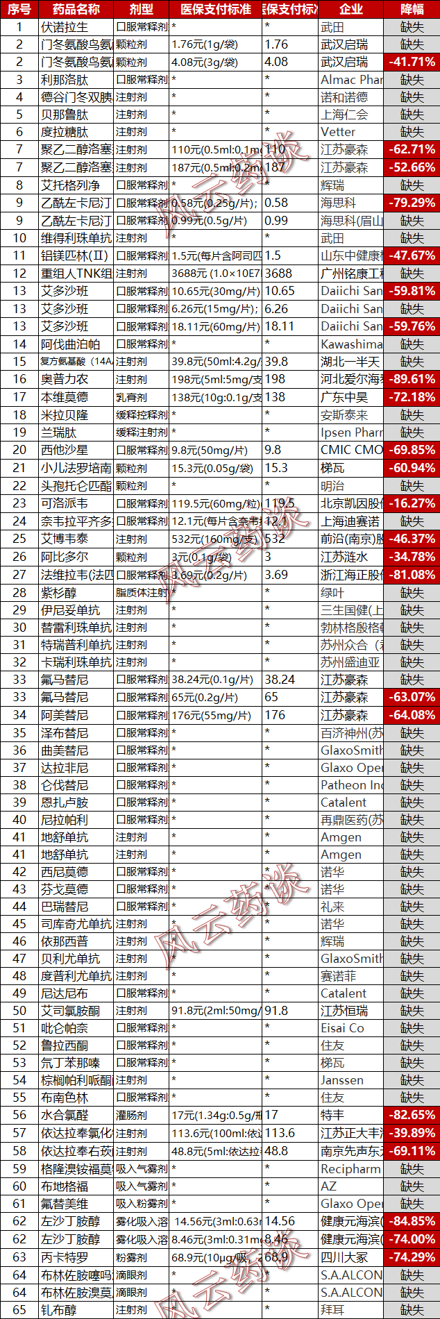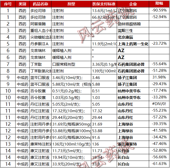表1:化药谈判准入目录及降幅(化药、医保乙类、谈判准入)