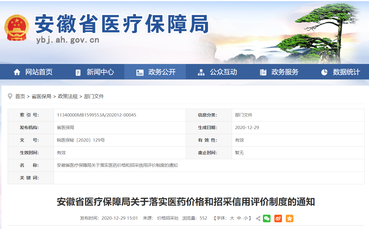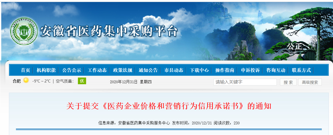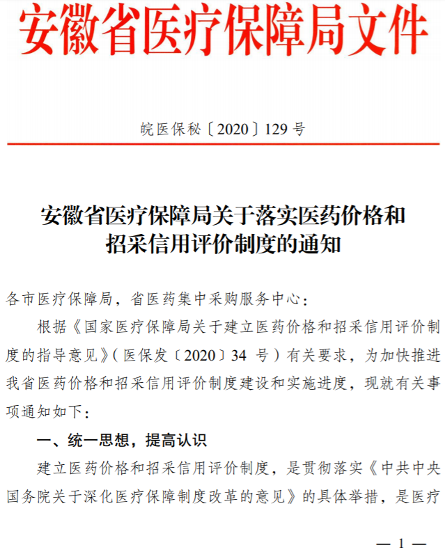 为确保我省医药价格和招采信用评价工作顺利推进,依据《国家医疗保障局关于建立医药价格和招采信用评价制度的指导意见》(医保发〔2020〕34号)及《安徽省医疗保障局关于落实医保价格和招采信用评价制度的通知》(皖医保秘〔2020〕129号),现就相关企业提交《医药企业价格和营销行为信用承诺书》相关事宜通知如下:
