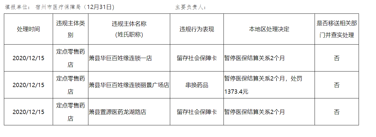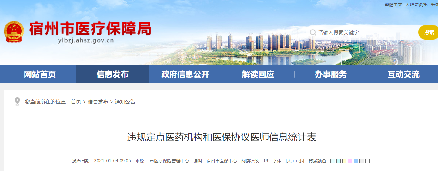 宿州市违规定点医药机构和医保协议医师