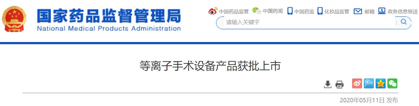 今天(5月11日),国家药品监督管理局发布公告称,近日批准了湖南菁益医疗科技有限公司生产的创新产品“等离子手术设备”的注册。