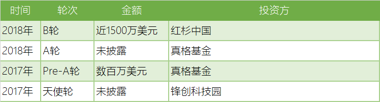 2015年9月,公司完成由人人公司领投的1000万美元A轮融资。2018年12月,公司完成超1亿元人民币的B轮融资,由拾玉领投,同创伟业和元禾原点跟投。